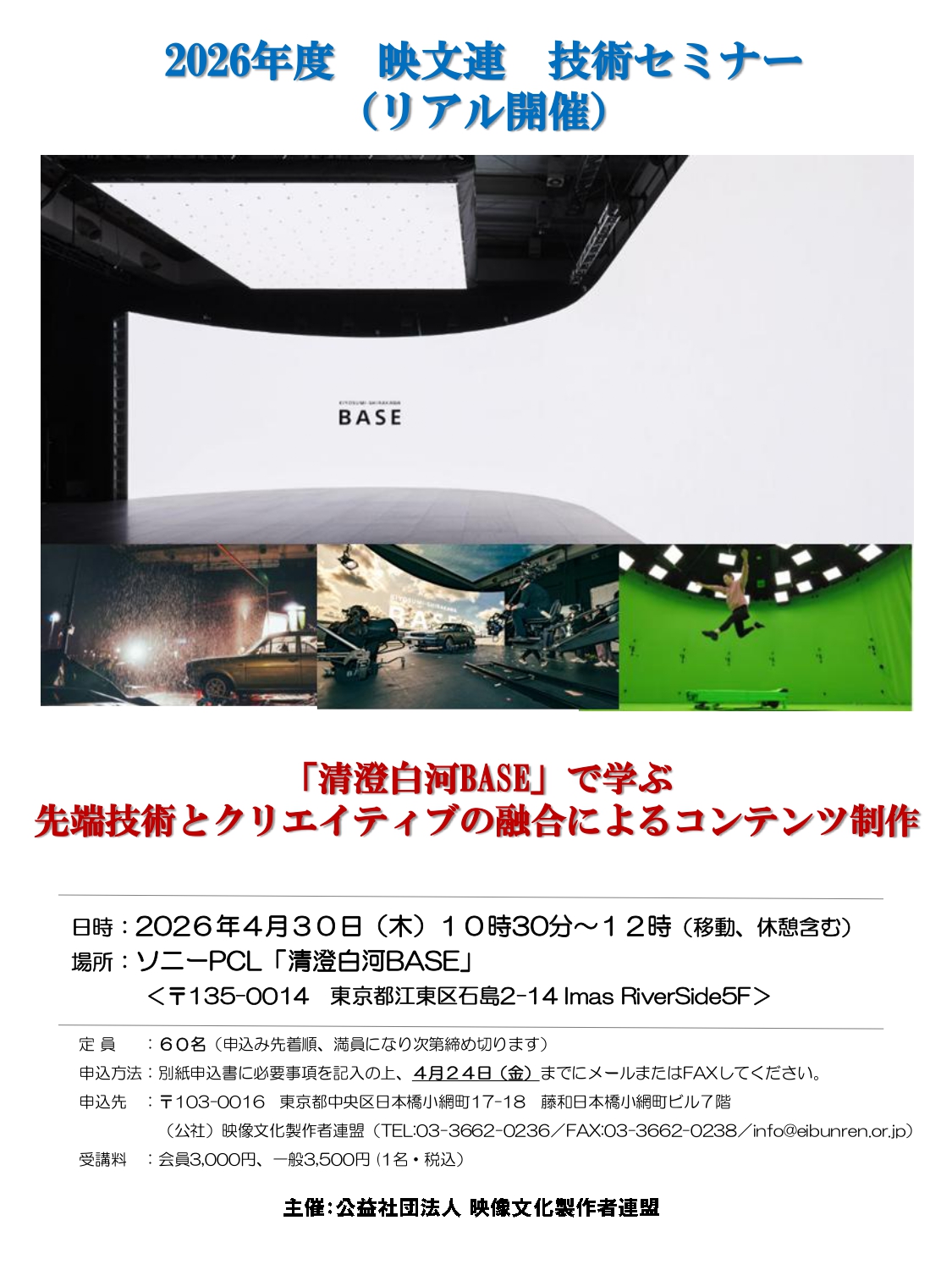 - <映文連 技術セミナー参加申込書2026年度(Word)に必要事項をご記入の上、